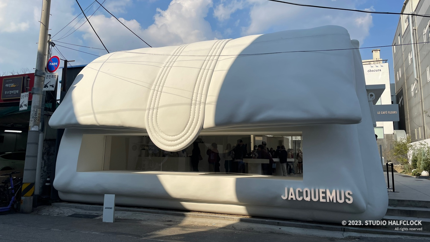 자크뮈스의 새로 론칭한 르 밤비무백으로 건물을 만들어버린 자크뮈스의 성수 팝업스토어입니다. 팝업 스토어의 이름은 'Le Cafe Fleur'. 자크뮈스의 2023 컬렉션 'Le Chouchou'를 비롯해 르 치키토 백, 지갑, 모자 등 다양한 액세서리도 구경할 수 있다고 하니 성수에 놀러 간다면 한 번쯤 들려볼 만한 팝업스토어입니다.