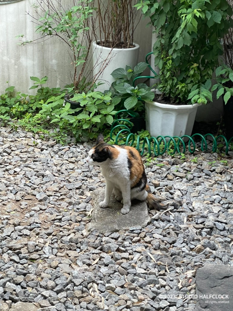 정원이 편한지 정원 구석에서 낮잠을 자던 고양이..