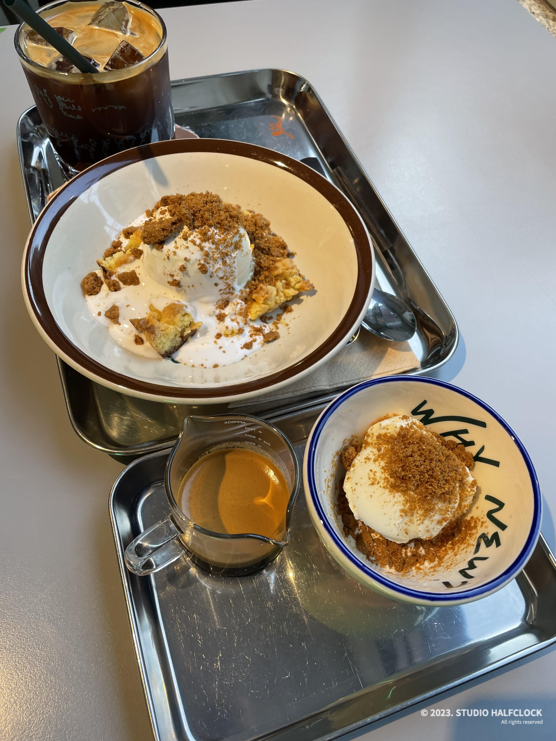 갈 때마다 먹는 디저트는 애플 샤워 (애플크럼블 + 하겐다즈 아이스크림 + 생크림) 7,500원 가격도 내 기준으로 아주 합리적이다. 다른 곳에서 애플크럼블을 먹을 때마다 이상하게 항상 맛이 없었는데, 여기 애플크럼블은 진짜 미쳤다. 일단 애플크럼블 안에 찐 애플이 엄청 많이 있어서 맛있게 씹힘 (진짜 존맛탱임) 거기에 하겐다즈 아이스크림과 생크림, 로투스 가루 조합이 미쳤다. 한 번 먹어보면 달달한 거 당기는 날에 매번 생각남.