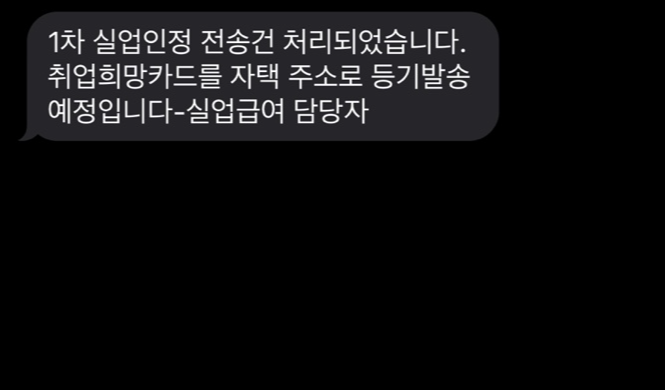 이렇게 실업급여 담당자에게 문자가 옵니다.