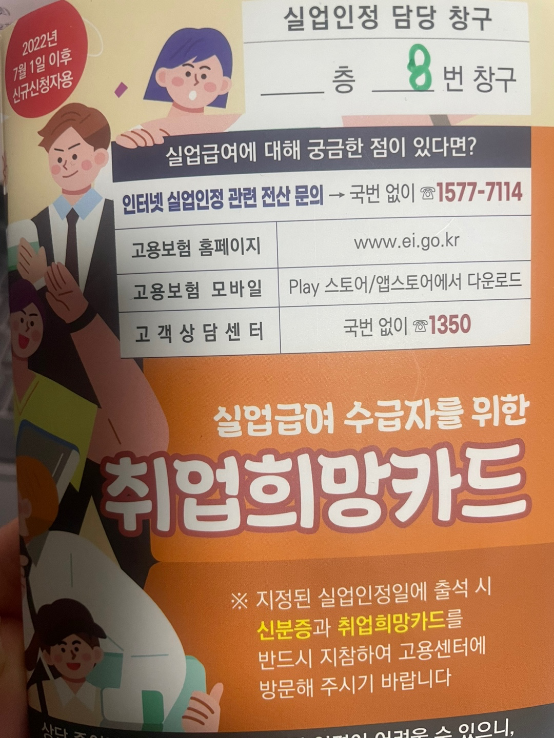 이때 신분증, 구직활동자료, 취업희망카드를 지참해야 하니