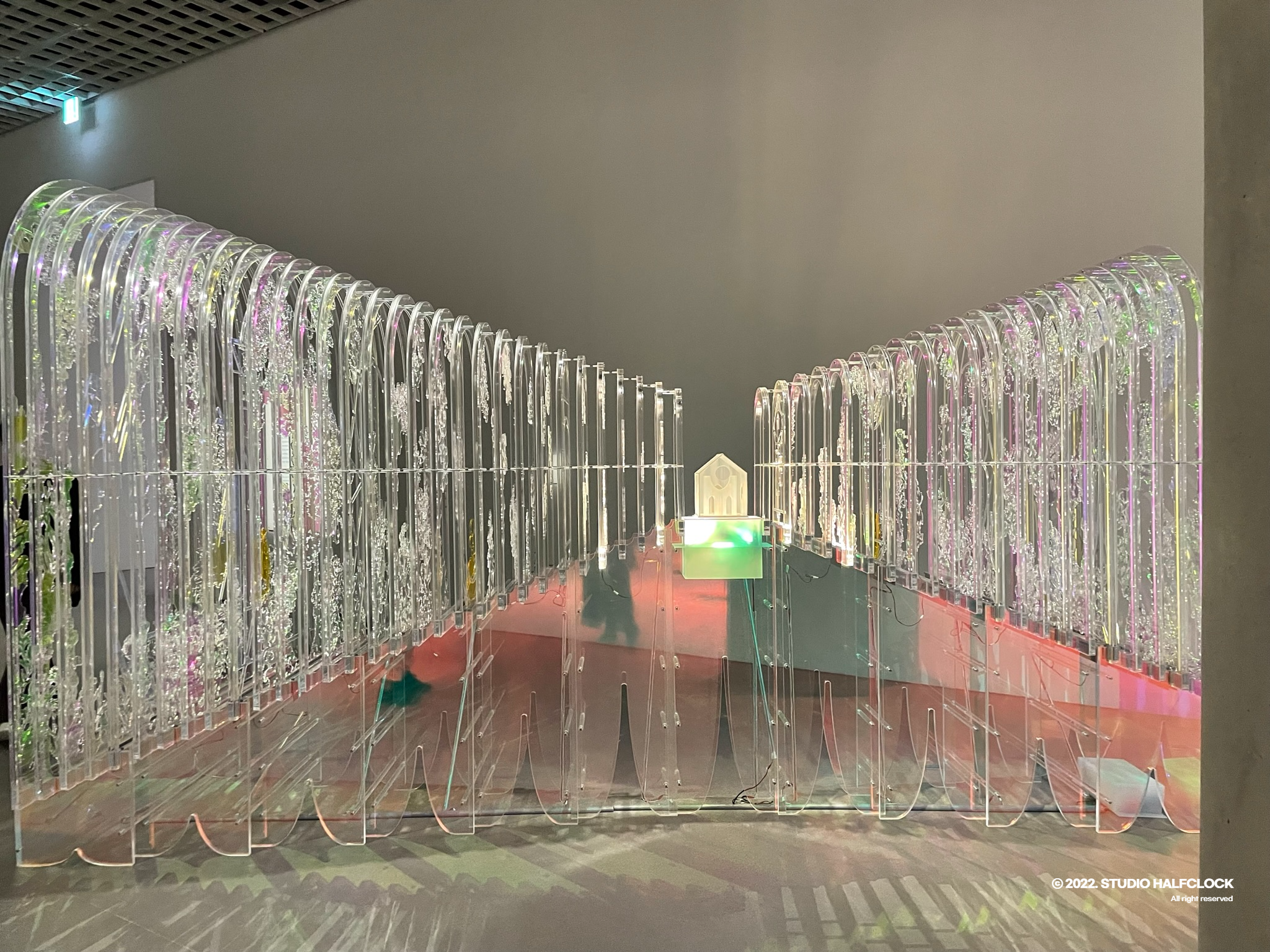 수많은 아크릴 레이어드로 내부 깊이감을 표현했고, 조명은 아크릴 패널들을 밝혀 주변을 환하게 만드는 작품이었다. 작품을 앞에서 관람하면 내부에 빨려 들어가는 느낌을 느낄 수 있다.