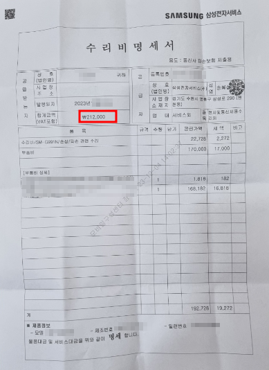 *수리비 명세서 꼭 발급받으시고 영수증 챙겨주세요