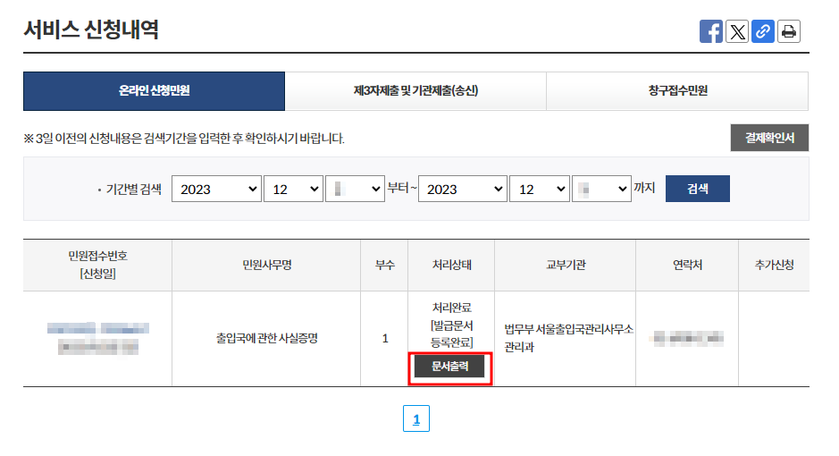 문서출력을 눌러줍니다.