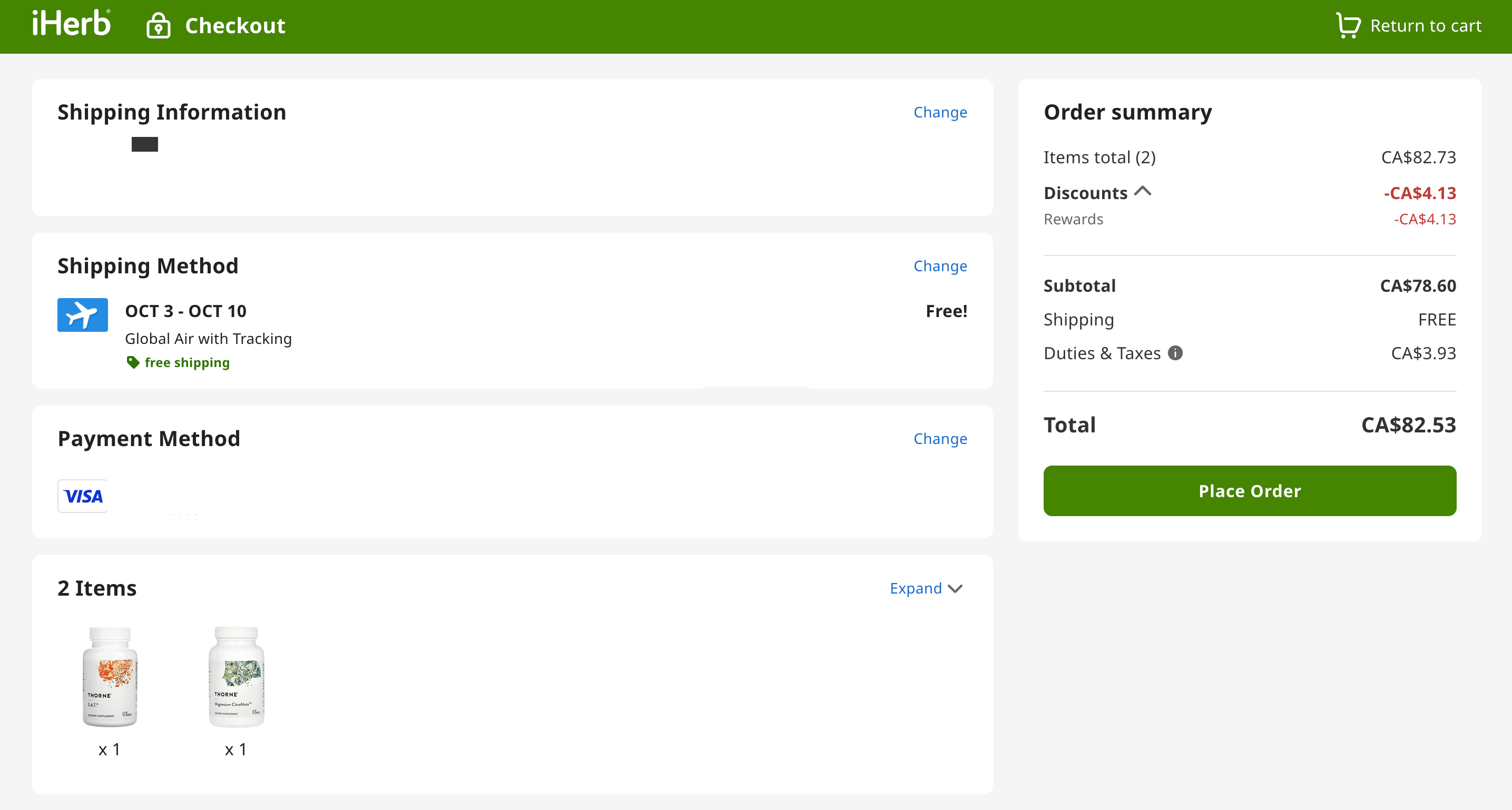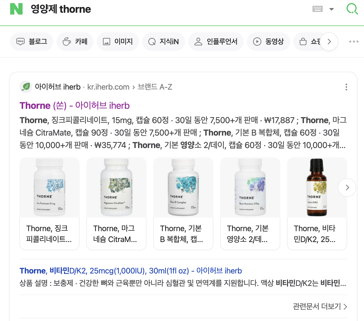 한국에도 아이허브가 있어요. 그냥 네이버에 thorne(쏜) 영양제 검색하면 바로 뜹니다. 아이허브에서 배송도 되고 저는 한국에서 쿠팡으로 해외배송 했었어요. (역시 쿠팡 아주 빠름) 아이허브에서 시키고 한 4~5일 정도 기다렸네요.. 기다림이 익숙지 않지만 캐나다생활 적응 중...