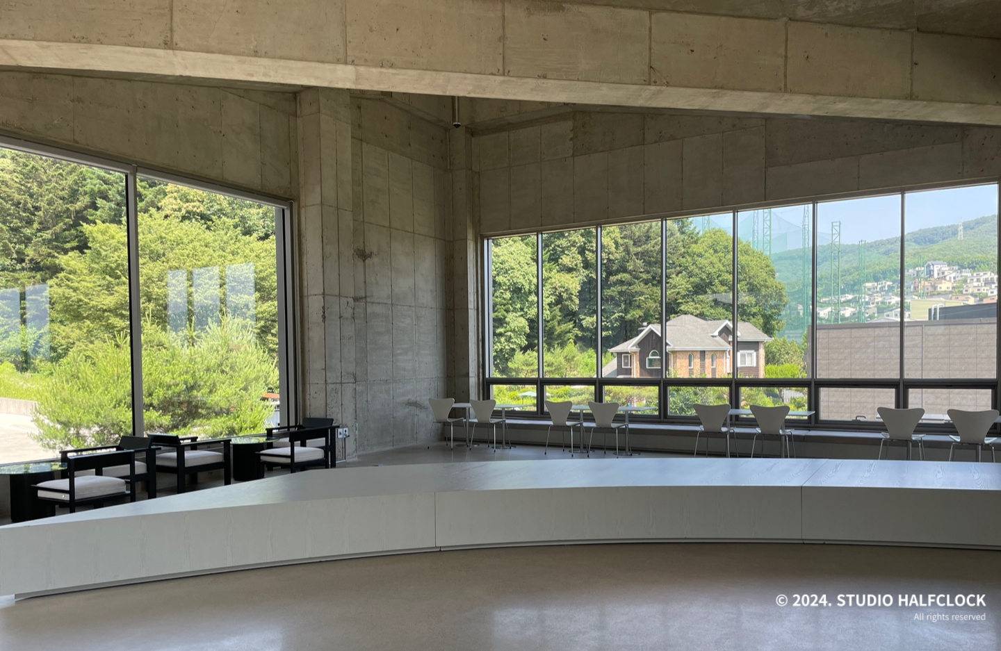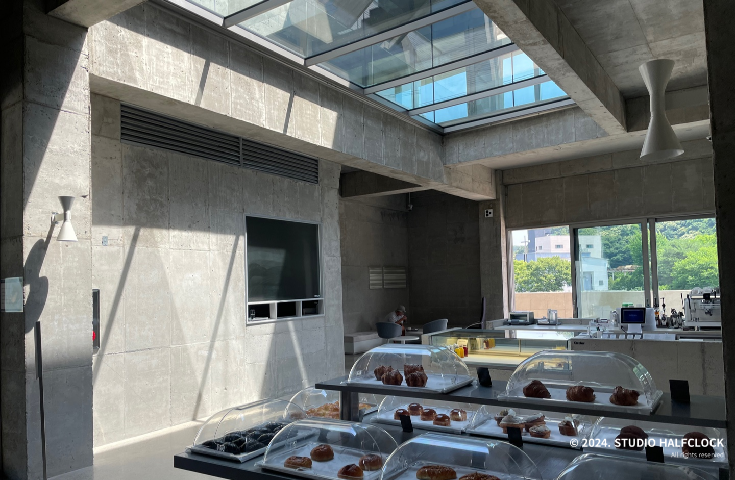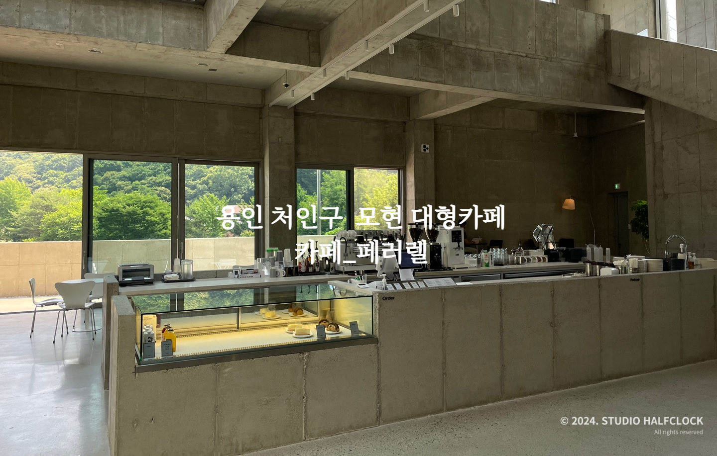 용인 처인구 모현에 위치한 대형 단독 카페로 한적한 위치에 멋진 건물로 이목을 끈다. 사실 보자마자 건축회사에서 사옥으로 지은 건가라고 생각이 들 정도로 카페 설계에 신경을 많이 쓴 게 느껴졌다. 총 3개의 층으로 1,2층은 카페, 3층은 루프탑이 있다. 노출콘크리트 이용으로 질리지 않으면서 유리를 적절히 활용하여 주변의 산과 논을 전망으로 한다. 오전에 갈만한 카페를 찾다가 오전 10시, 꽤 일찍 오픈하는 카페가 있어서 우연히 가게 되었는데, 건축이 멋있어서 글을 쓰게 됐습니다. (근데 빵도 정말 맛있었음)