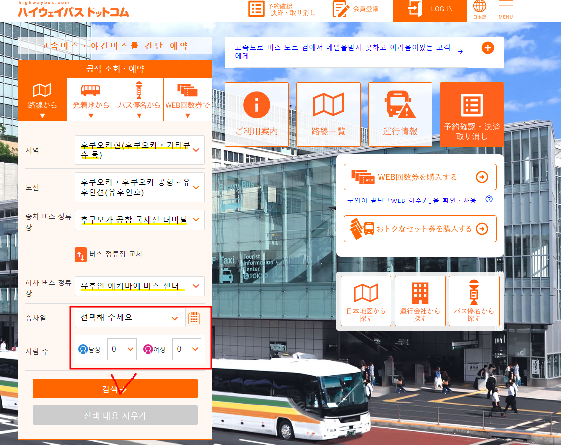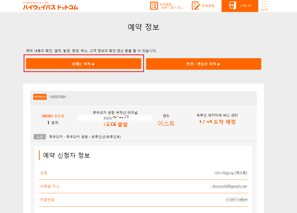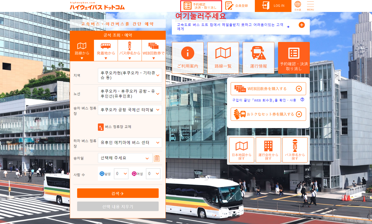 저는 비행기가 후쿠오카 공항에 오후 2:30 도착예정이라서 넉넉하게 버스 시간을 4시로 예약했습니다. (약 1시간 30분 여유시간) 너무 촉박하게 예약하면 마음도 조급하고 불안하니 넉넉하게 예약하는 게 좋아요.