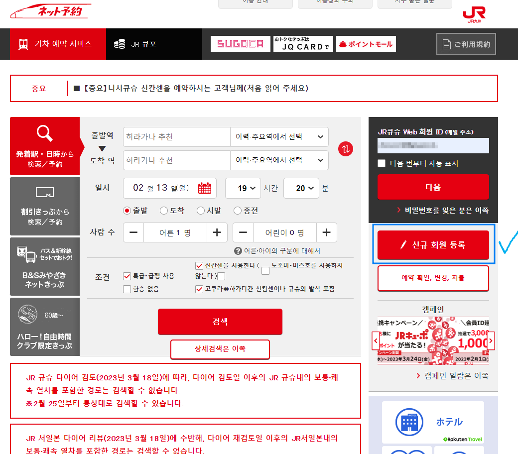 이 웹사이트에서 기차 예약을 하려면 회원가입을 해야 합니다.