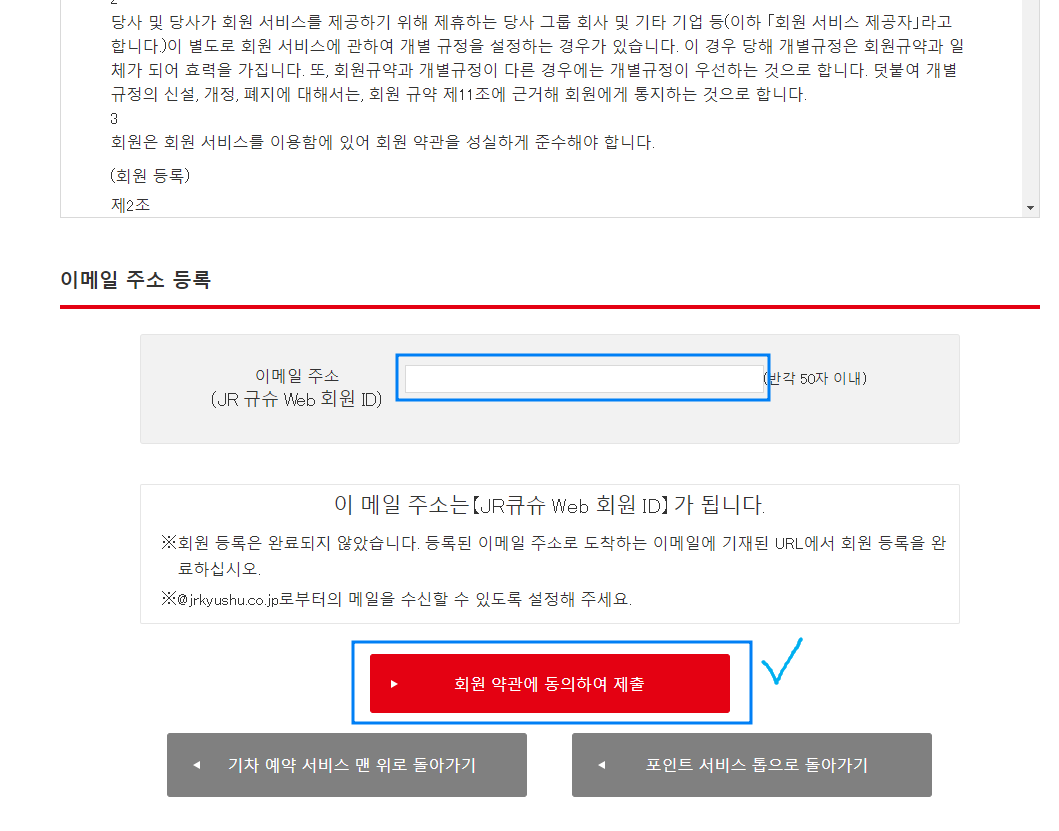 회원 약관과 이메일 주소 입력란이 있습니다. 그냥 자주 쓰는 이메일 주소 넣어주세요.
