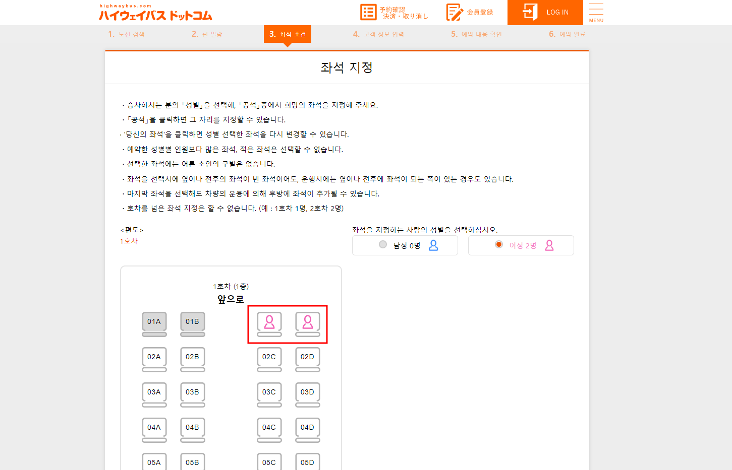 저는 멀미가 심해서 앞 좌석으로 선택했습니다. 거의 한 달 전에 예약하니까 좌석이 많았습니다. (티켓은 한 달 전부터 예약가능합니다)