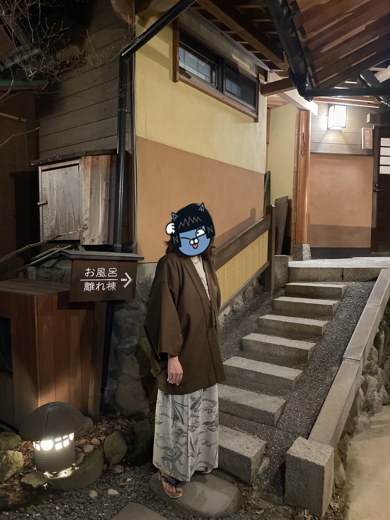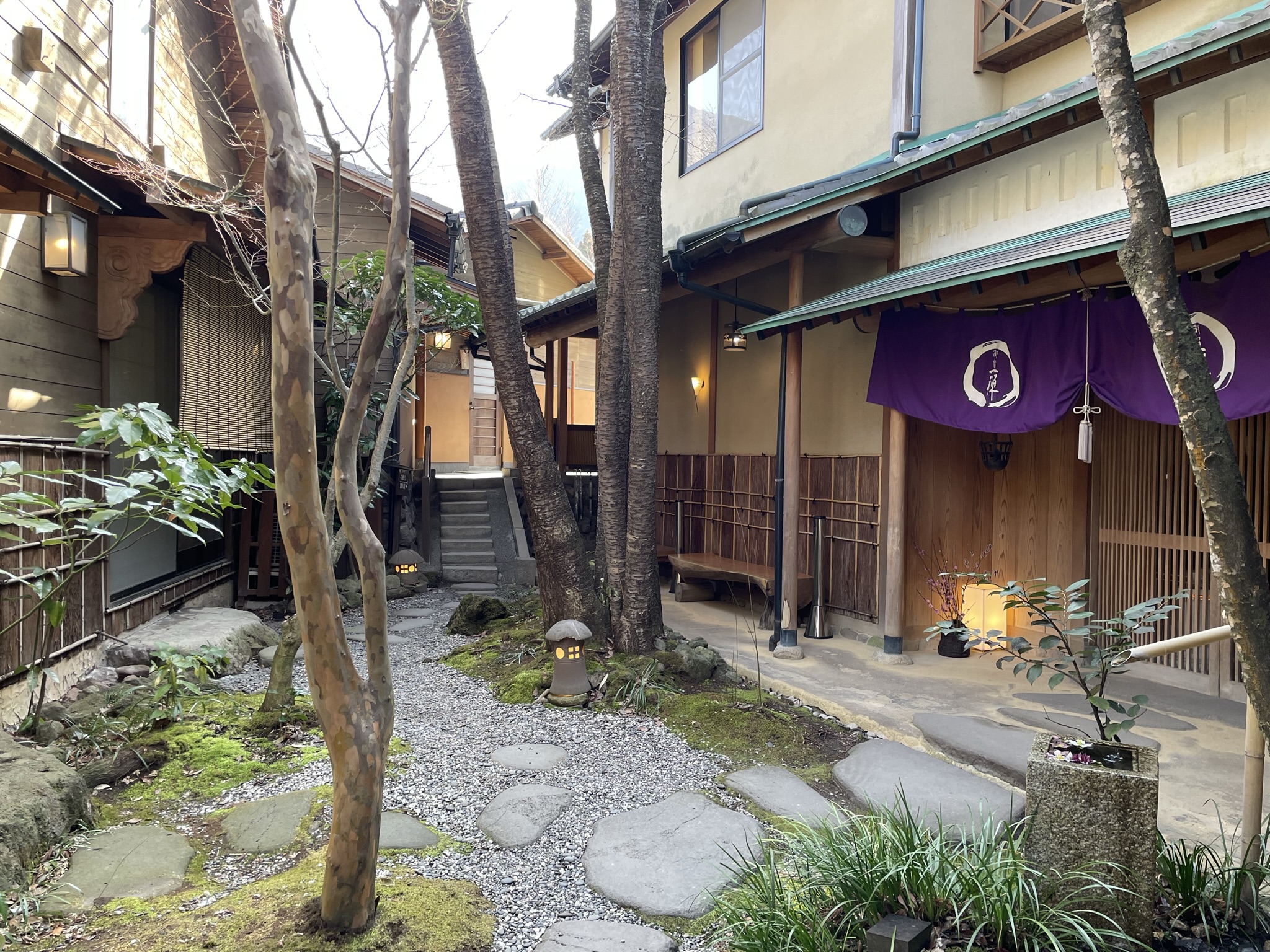 작은 정원이 있는데 귀엽다. 왼쪽 계단으로 올라가면 온천을 할 수 있다. (가족탕과 공용온천이 있음)