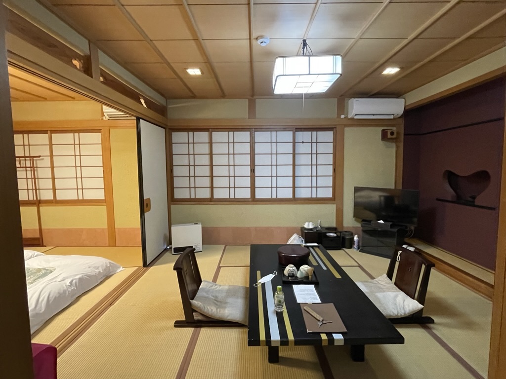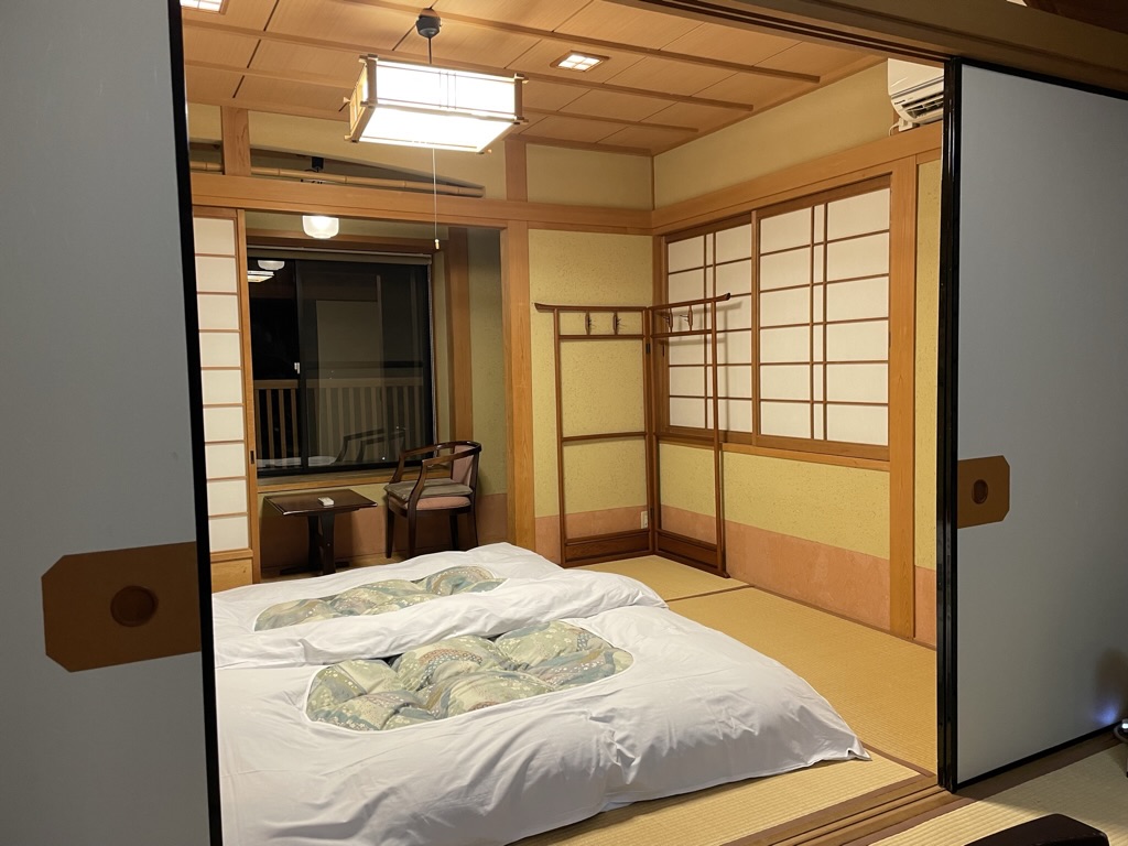 료칸은 일본식 다다미방인데 (전통 가옥느낌) 원래 침대가 없다.