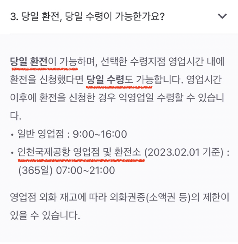 - 환전 신청 가능 금액: 1일 최대 100만 원