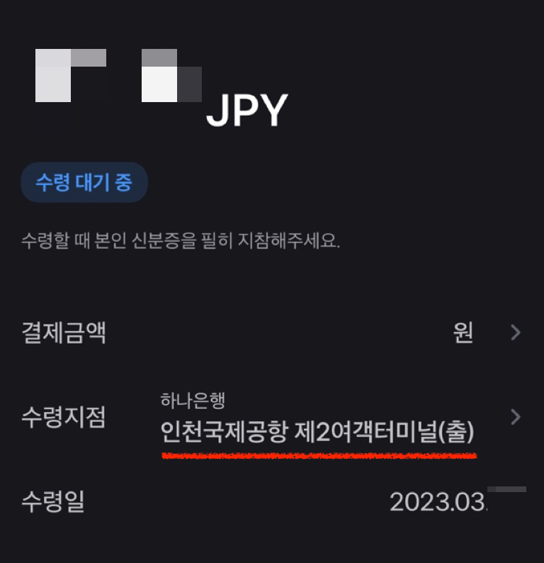 곧 일본을 갈 예정이라 엔화를 환전했다. 나는 대한항공을 타고 갈 예정이라서 제2여객터미널의 하나은행에서 수령하기로 했다.
