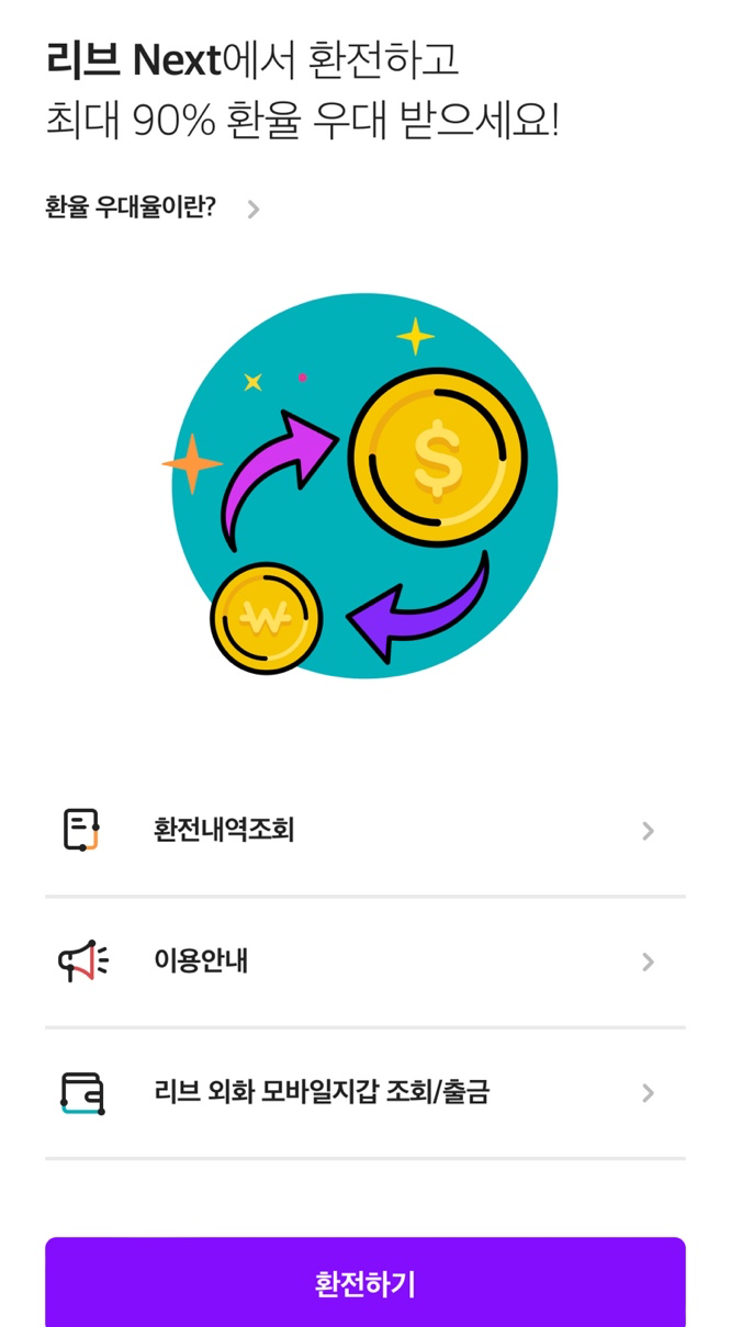 본인은 예전부터 국민은행을 주거래 은행으로 이용했어서 예전에는 국민은행 리브(지금 리브 Next) 어플로 환전을 자주 했다.