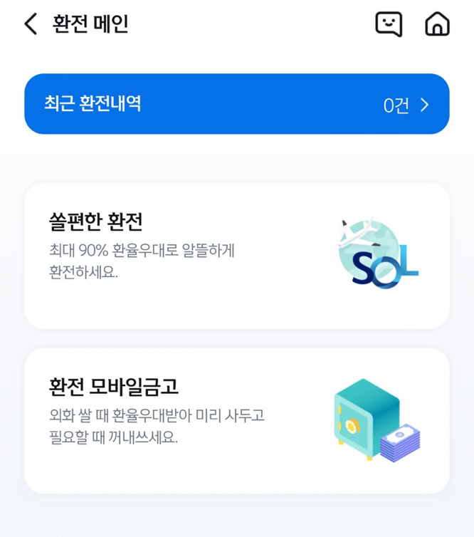 신한은행을 이용한다면 신한 Sol 어플로 환전신청을 할 수 있다. 신한은행 계좌가 있다면 우대환율이 90%까지 올라가기 때문에 굳이 토스뱅크에서 환전하지 않아도 된다. 그리고 1일 환전가능 액수가 약 260만 원 정도라서 많은 돈을 환전하는 경우 좋을 것 같다.