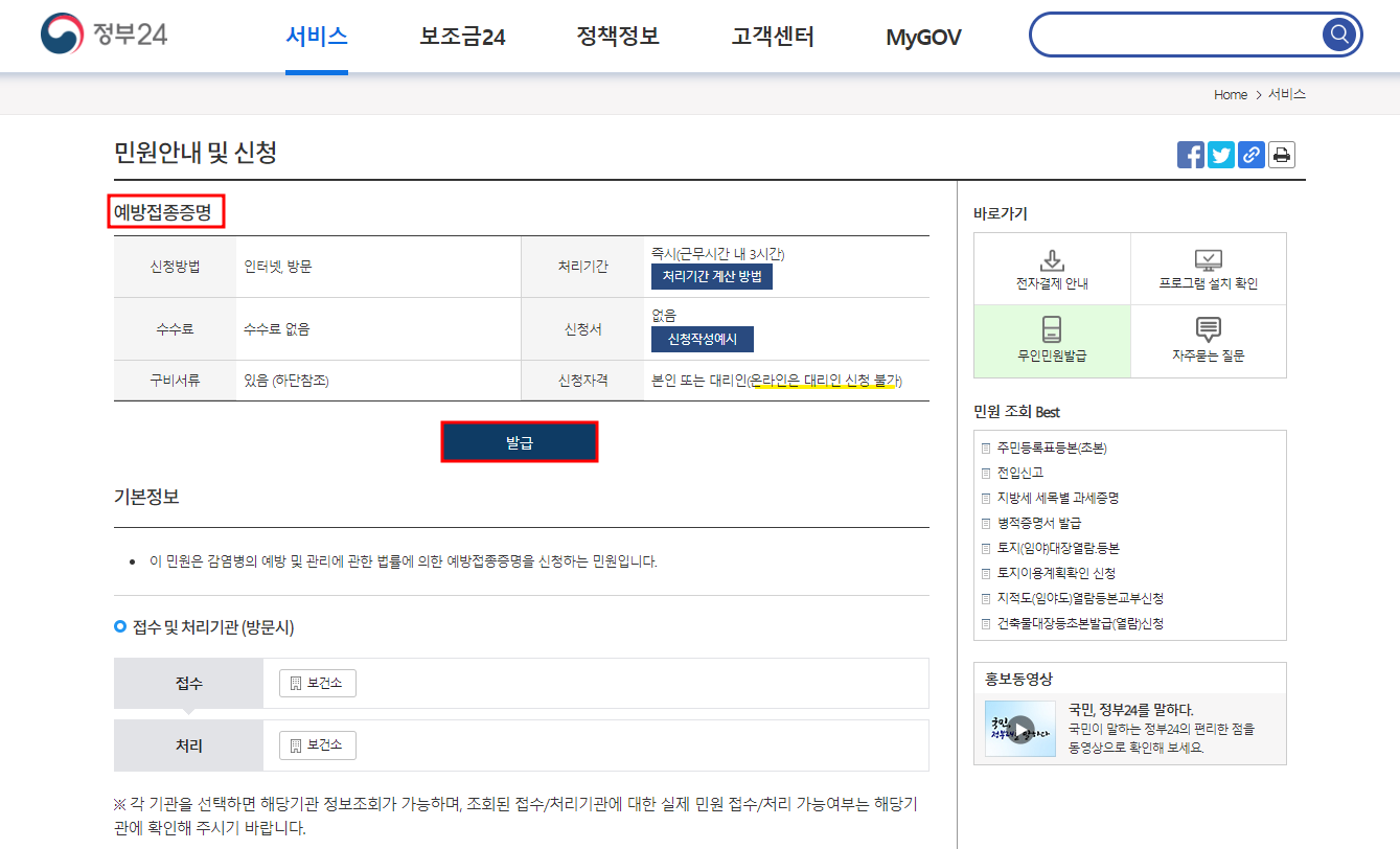 예방접종증명 | 민원안내 및 신청 | 민원24 | 정부24