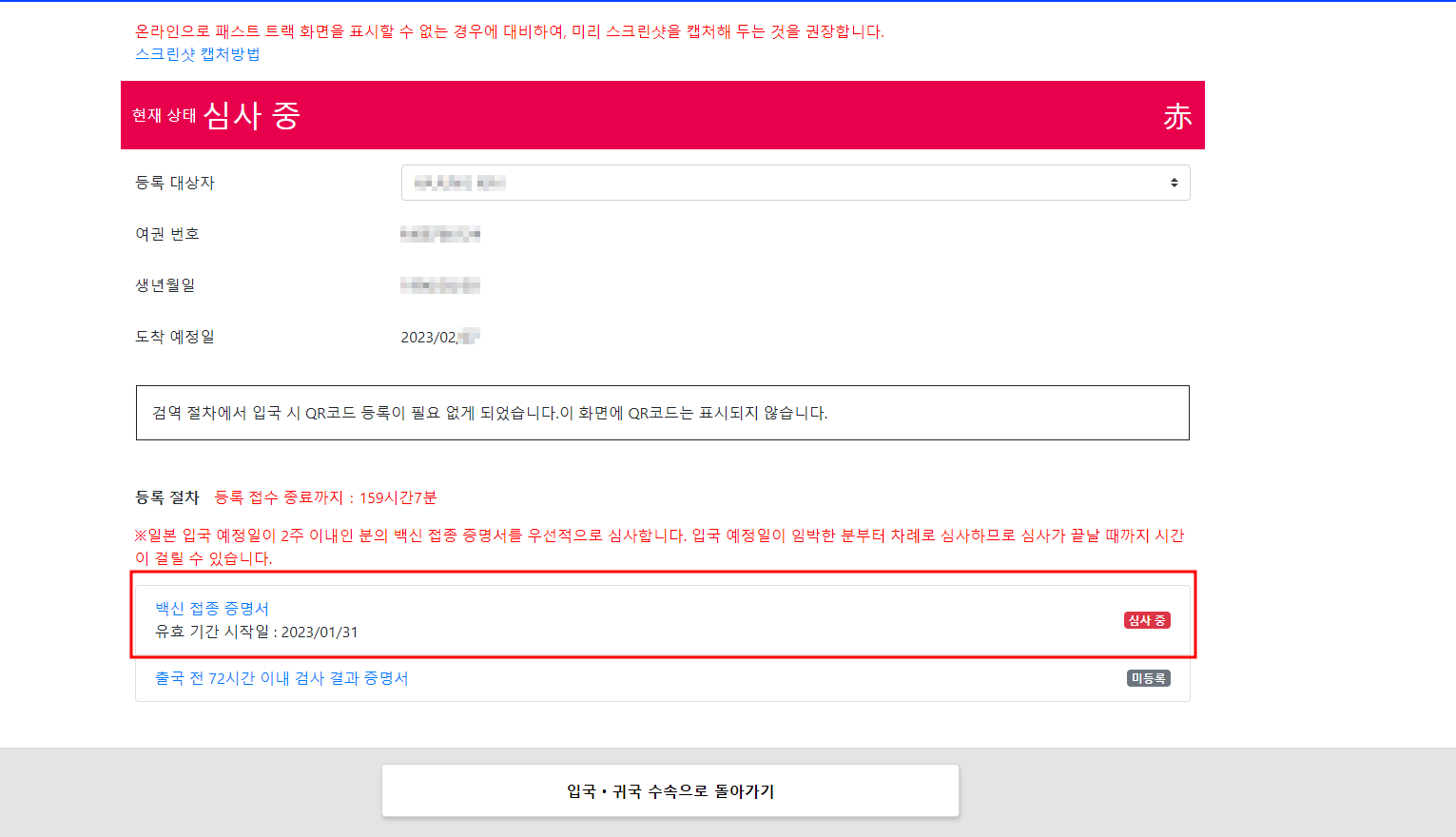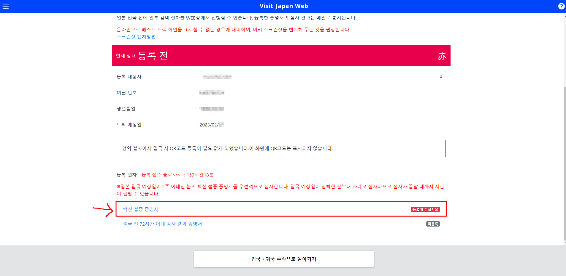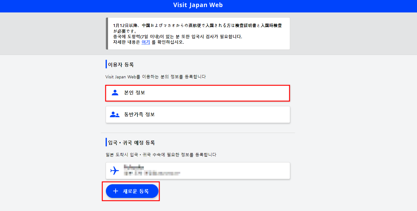 입국 예정 등록을 할 때, 일본에 도착하는 날짜와 본인이 타게되는 비행기 편명을 작성해주고 여권 정보를 등록해 주시면 됩니다. 이것도 금방 진행합니다!