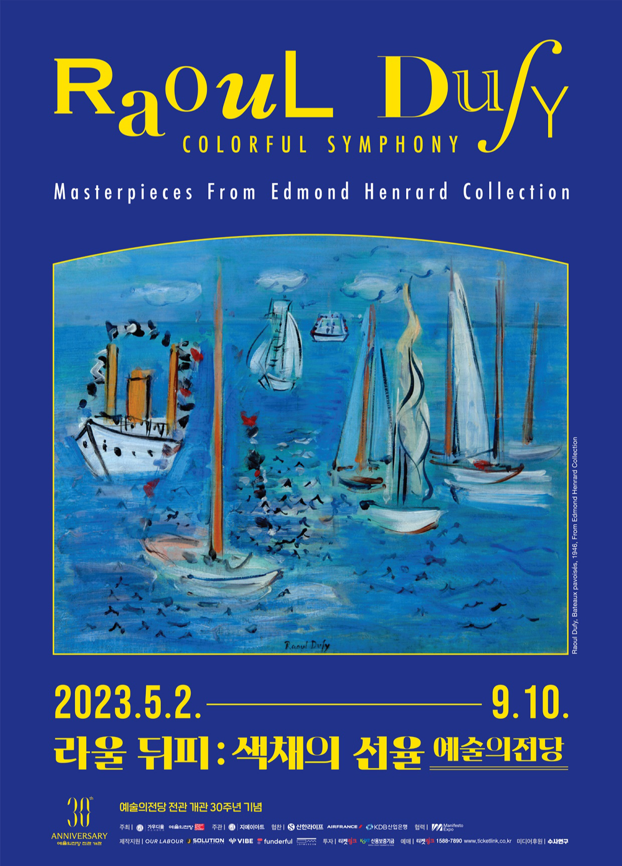 예술의전당 전관개관 30주년 기념의 전시회라고 한다. 예술의전당과 문화콘텐츠 전문기업 가우디움어소시에이츠가 공동으로 주최한 최대 규모의 라울 뒤피 회고전이다. 유화, 과슈화, 드로잉, 수채화, 판화 등 오리지널 원화 작품과 아트북 일러스트, 텍스타일 디자인, 쿠튀르 드레스, 가구까지 라울 뒤피의 다채로운 예술세계를 느낄 수 있는 전시다.