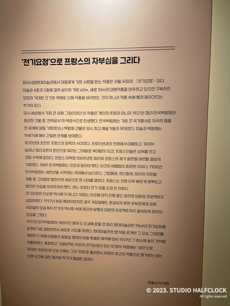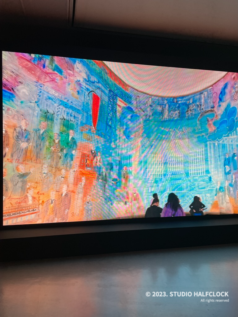 프랑스 파리에 영구적으로 전시되어 있다는 '전기의 요정'을 미디어 전시로 볼 수 있었다. 규모가 굉장히 컸는데, 실제로 본다면 정말 좋았을 것 같다. 그러려면 프랑스 가야 함.. 영상으로라도 볼 수 있어서 좋았다.. 언제 가냐 프랑스..