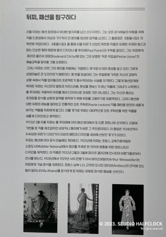 라울 뒤피의 텍스타일 디자인과 함께, 패션 디자인을 볼 수 있다. 다양한 패턴과 무늬를 볼 수 있었다.