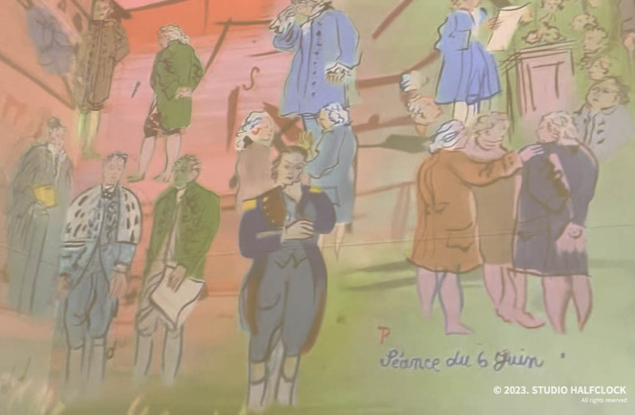 당시 세상에서 가장 큰 유화 그림이었던 '전기요정' 작품은 개인의 주문이 아닌 1973년 파리 만국박람회의 중요한 건물 중 '전력공사'의 벽장식으로 탄생했다. 이 작품을 미디어 아트로 만든 영상을 볼 수 있다.