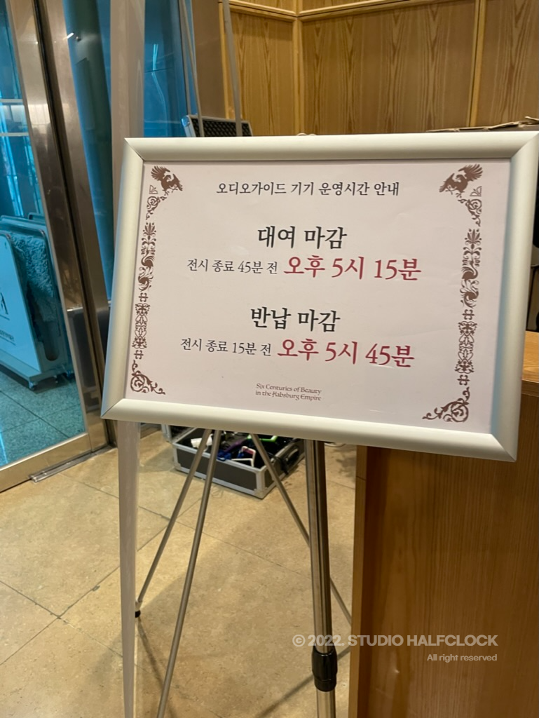 더 자세하게 전시에 대해 듣고 싶다면 오디오 가이드 기기를 대여하는 것을 추천한다. 이용료는 3,000원이고 대여 마감은 오후 5시 15분, 반납 마감은 오후 5시 45분이니 꼭 시간을 확인하고 이용하시길 바란다.