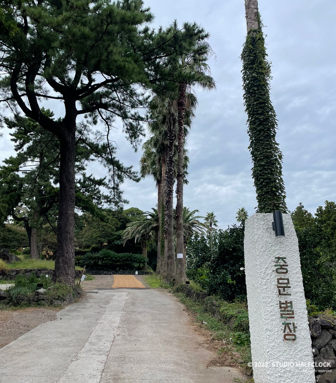 주차를 하고 조금 걸어서 올라가면 이런 뷰를 볼 수 있습니다. 진짜 열대지방인줄 알았어요. 엄청난 크기의 나무들을 볼 수 있었고 조경이 어마어마합니다. 제주도에서 이렇게 큰 야자나무를 볼 수 있다니, 신기하기도 했습니다. 산책하듯 걸어 올라가면서 조경을 천천히 구경하는 재미가 있습니다.
