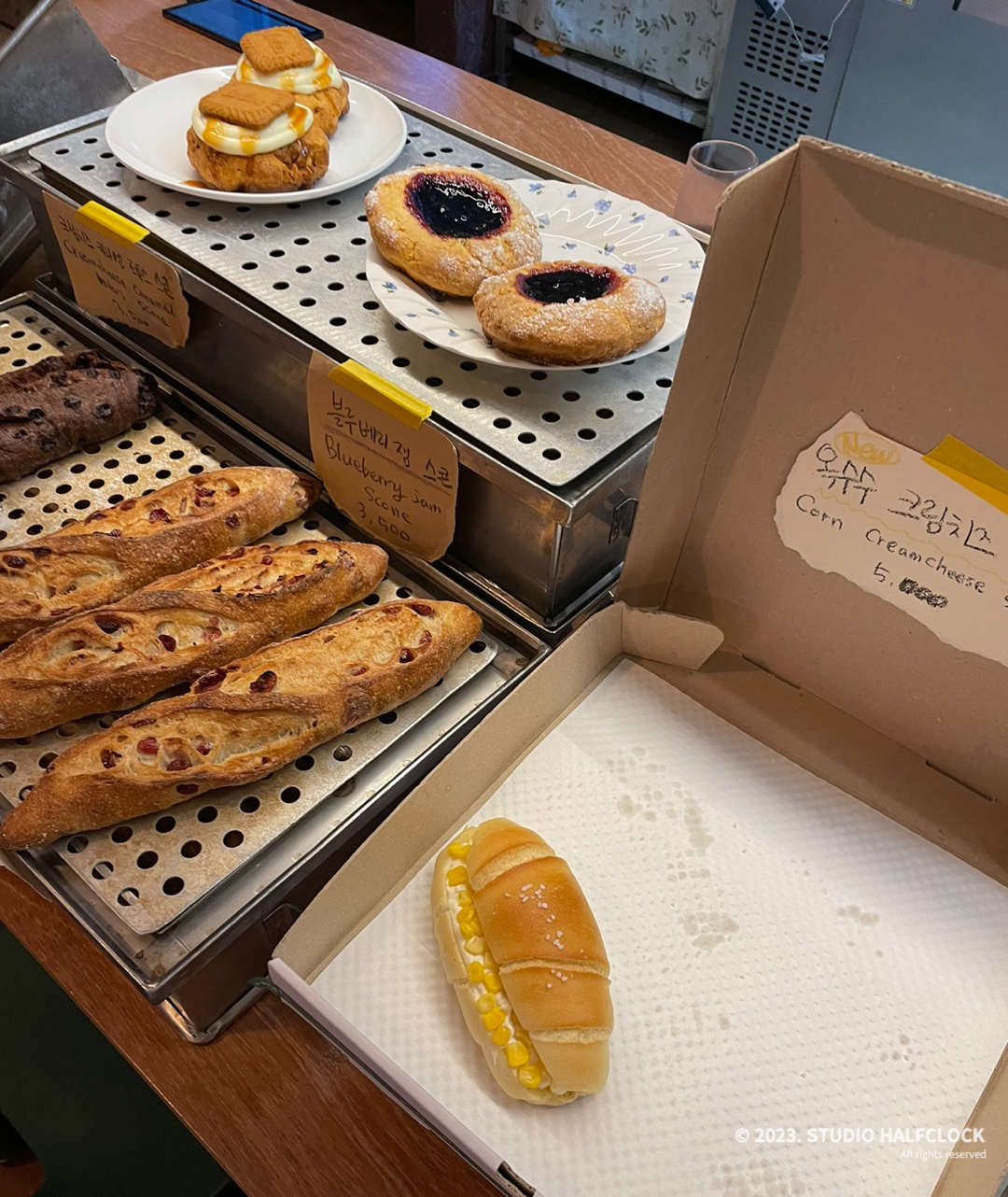 - 다양한 빵 판매 (블루베리 스콘 포장)