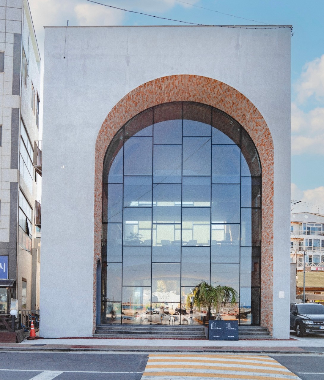 아치형 건물로 총 3층으로 전부 카페건물이다.
