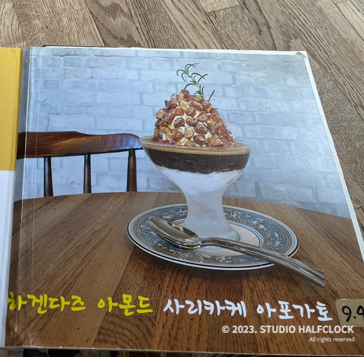 예전에 왔을때보다 가격이 오른 하겐다즈아몬드아포가토, 하지만 아무리 비싸도 이건 꼭 먹어야합니다. 접시도 너무 예쁜 접시에 유리잔을 얼려서 아포가토가 나오는데, 여기서 쓰는 아몬드는 매장에서 직접 로스팅하고 당일 제조한 수제 아몬드 사리카케를 쓴다고 합니다. 당일 생산한 아몬드 사리카케 판매도 해요. 이게 트라인커피의 시그니처 메뉴라서 꼭 드셔야합니다. 아몬드 진짜 맛있어요. 아이스크림과 커피랑 너무 잘어울립니다. 커피는 신맛이 강하지만 깔끔한 맛이었어요. 커피맛을 잘 모르지만 맛있었음.
