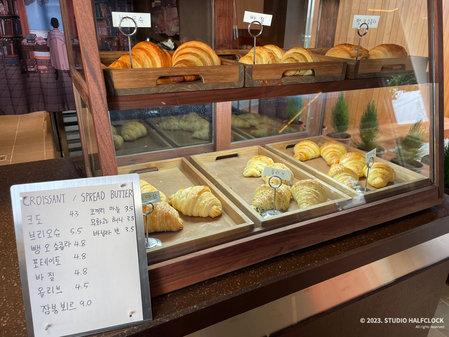- 주문메뉴: 커피 (길 7,000원, 부뚜막 6,500원) 크로와상 (브리오슈 5,500원)