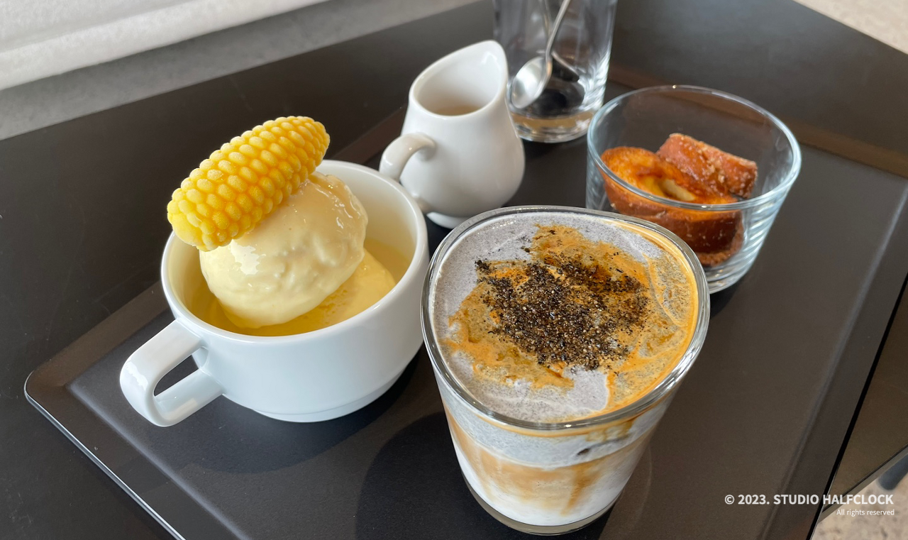 - 주문메뉴: 초당옥수수아포가토, 흑임자 크림라떼