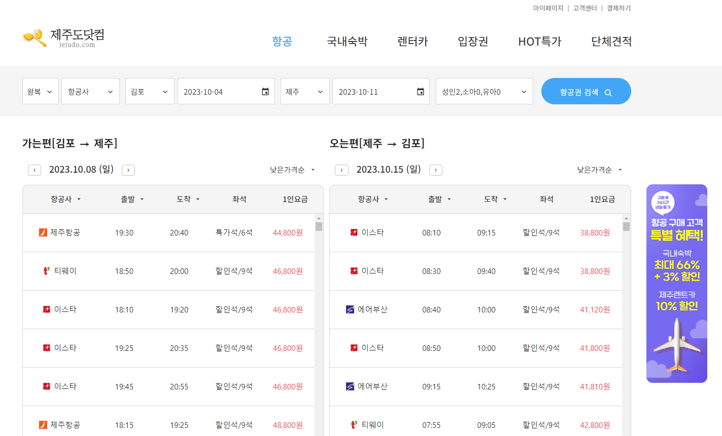 제주도닷컴에서 확인한 특가석이 각 항공사 웹사이트에 있을 수 있어요. 본인이 특정 항공사의 회원이라면 웹사이트에 들어가서 발권해도 됩니다. 이렇게 하면 발권대행수수료가 붙지 않아요.