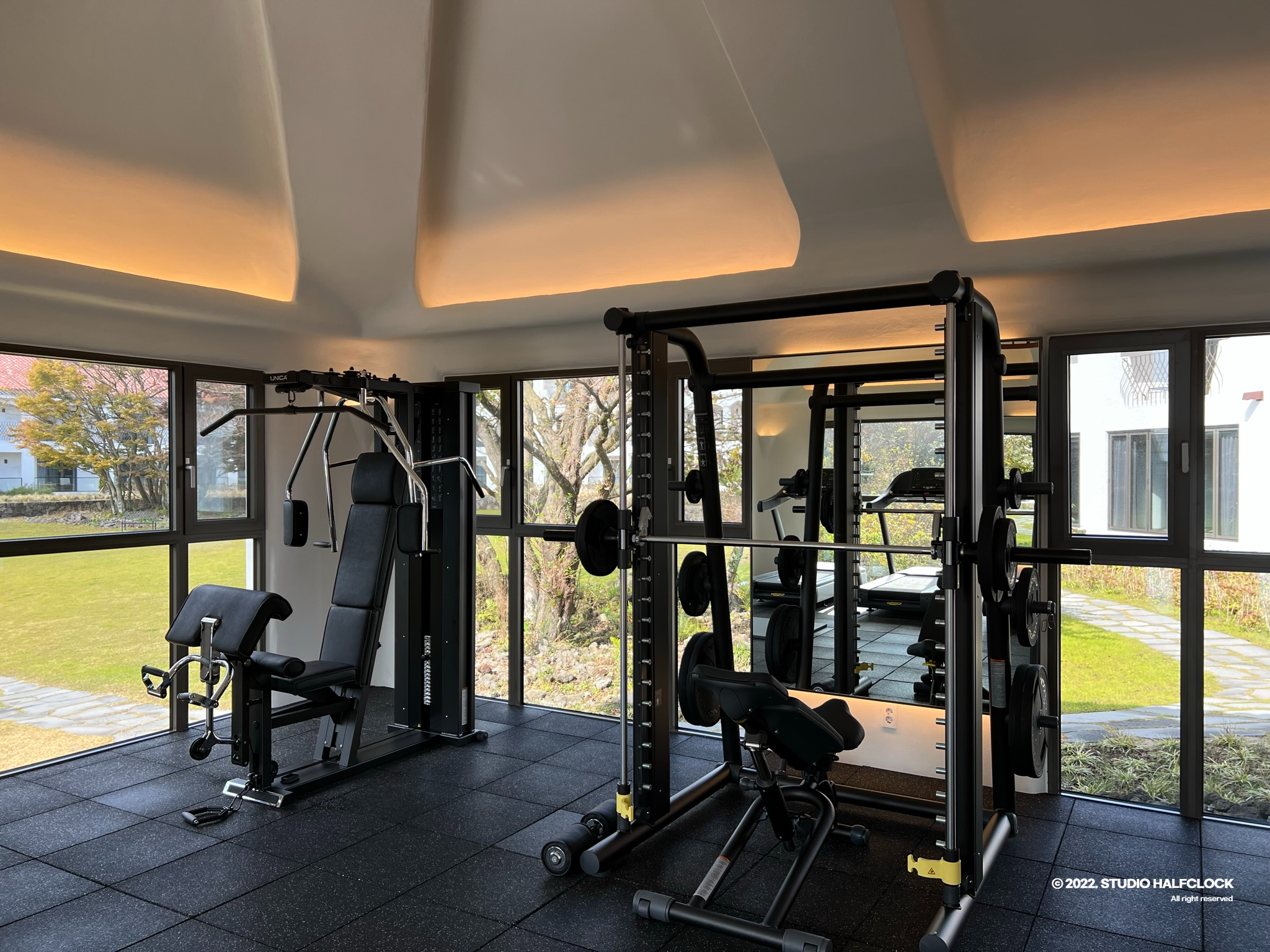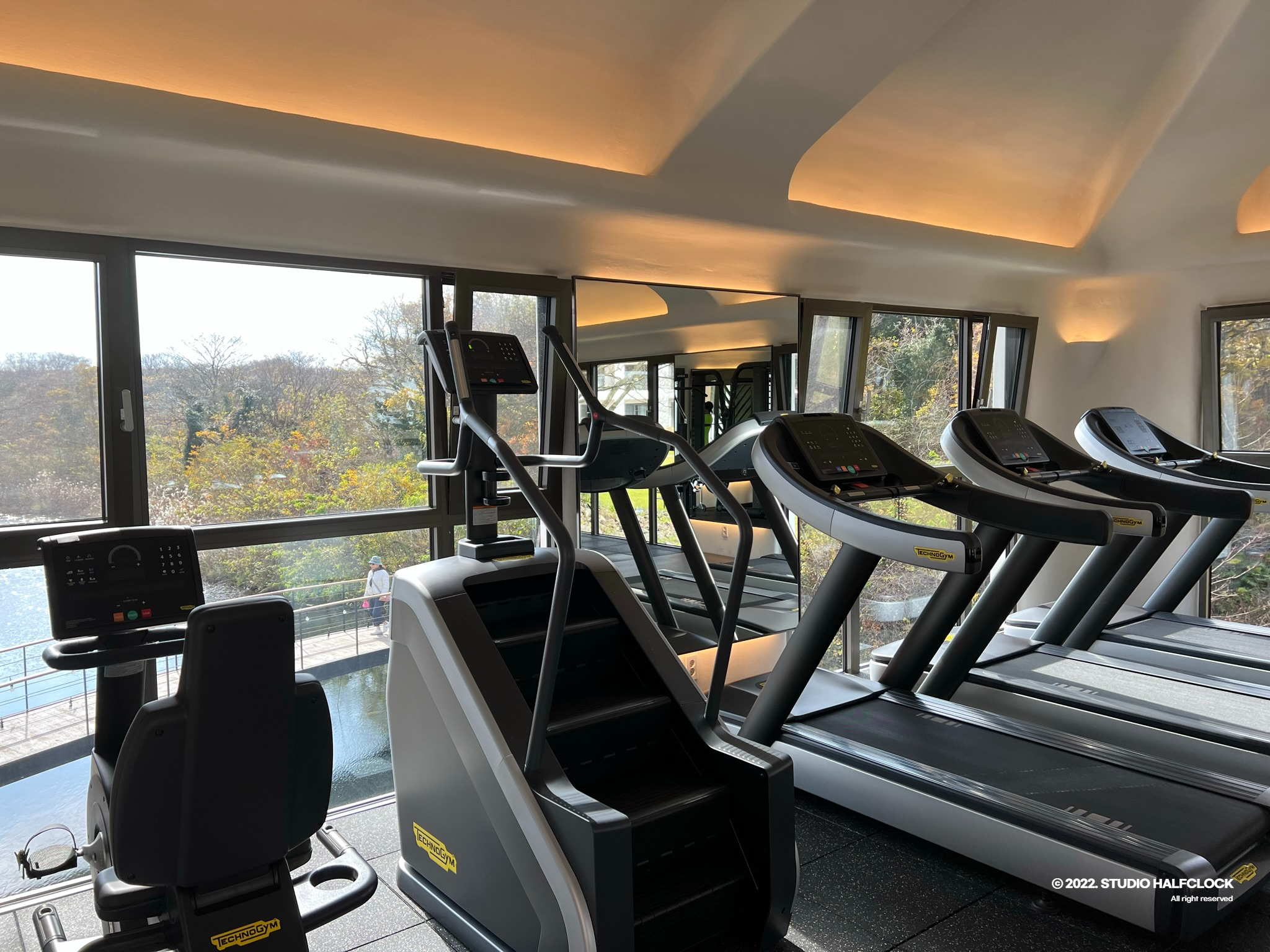 호캉스에 빠질 수 없는 헬스장! (본인 한정) 방안에만 있다 보면 운동을 하고 싶어 지는데, 시설이 굉장히 좋아서 한 번쯤은 할만하다. 호수 뷰를 보면서 운동할 수 있는 것이 매력적이었다. 운동기구들이 다 새것이었는데, 엄청 좋아 보였다! 천국의 계단도 있다.