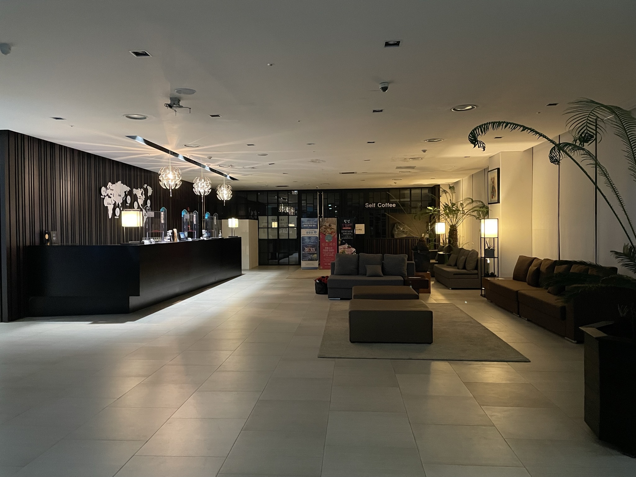 주차장은 외부 주차장이 굉장히 넓어서 딱히 불편함은 없었다. 체크인할 때 차량 번호를 알려주면 된다. 로비 쪽에는 카페가 있고 지하 1층에는 CU편의점을 24시간 운영하는데, 새벽에는 무인으로 운영하기 때문에 담배나 주류는 살 수 없다고 한다.