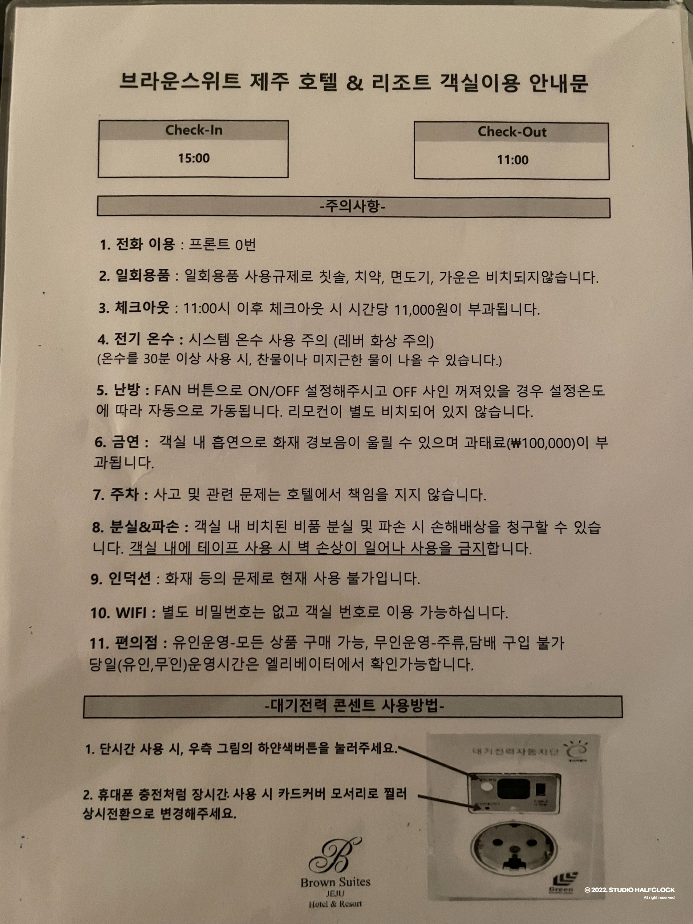 - 브라운 스위트 호텔을 고른 이유: 저렴한 가격 (금,토 예약인데 2박에 10만 원), 섭지코지와 우도 근처