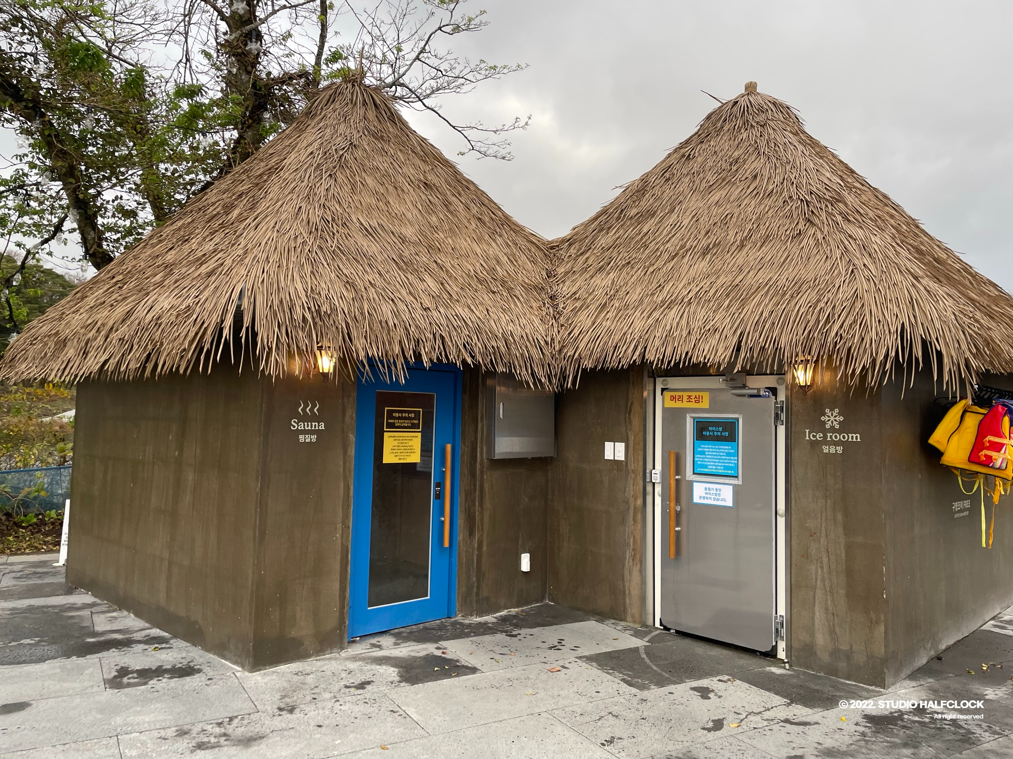 사우나 개인적으로 너무 좋았다. 사람이 많으면 좀 비좁을 수 있을 듯하다. 생각보다 내부가 작다. 겨울 온수풀 수영후 이동할 때 너무 추우니 잠깐 들러서 몸을 녹이기에 정말 좋다. 있다보면 물기가 다 마르니까 덜춥다. 다리를 건너야만 실외 수영장에 도착하기 때문에 투숙객들은 대부분 그냥 수영복에 가운만 입고 후다닥 실외 수영장으로 향한다. 역시 실외 수영장 도착해서 또 수영복으로 갈아입기 귀찮아하는 건 다들 같은 마음인 듯 하다.