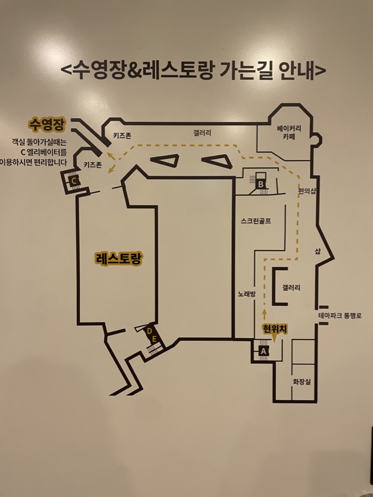 - 편의시설: 실내수영장, 실외 수영장(가족 풀, 성인풀), 사우나, 스크린 골프(유료), 헬스장, Kids play room