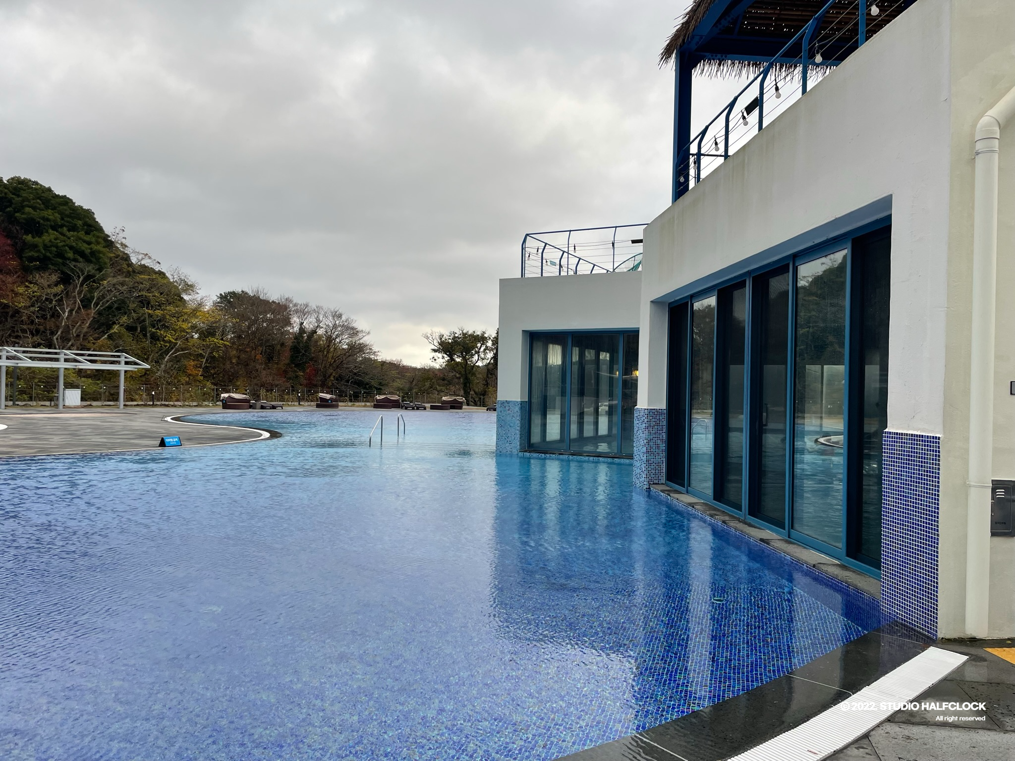 겨울에도 37도의 따뜻한 온수풀을 즐길 수 있어서 좋다. 인피니티 풀장은 성인 전용으로 아이들은 출입 불가인데, 아이들 노는 수영장과 이어져있기 때문에 그렇게 분리된 느낌은 없다. 인피니티 풀장이 알고 보니 인스타에서 굉장히 유명했다. 다른 수평이 강조되는 인피니티 풀과 달리 동그란 형태의 풀장으로 되어있어 특색 있어서 그런 듯하다.