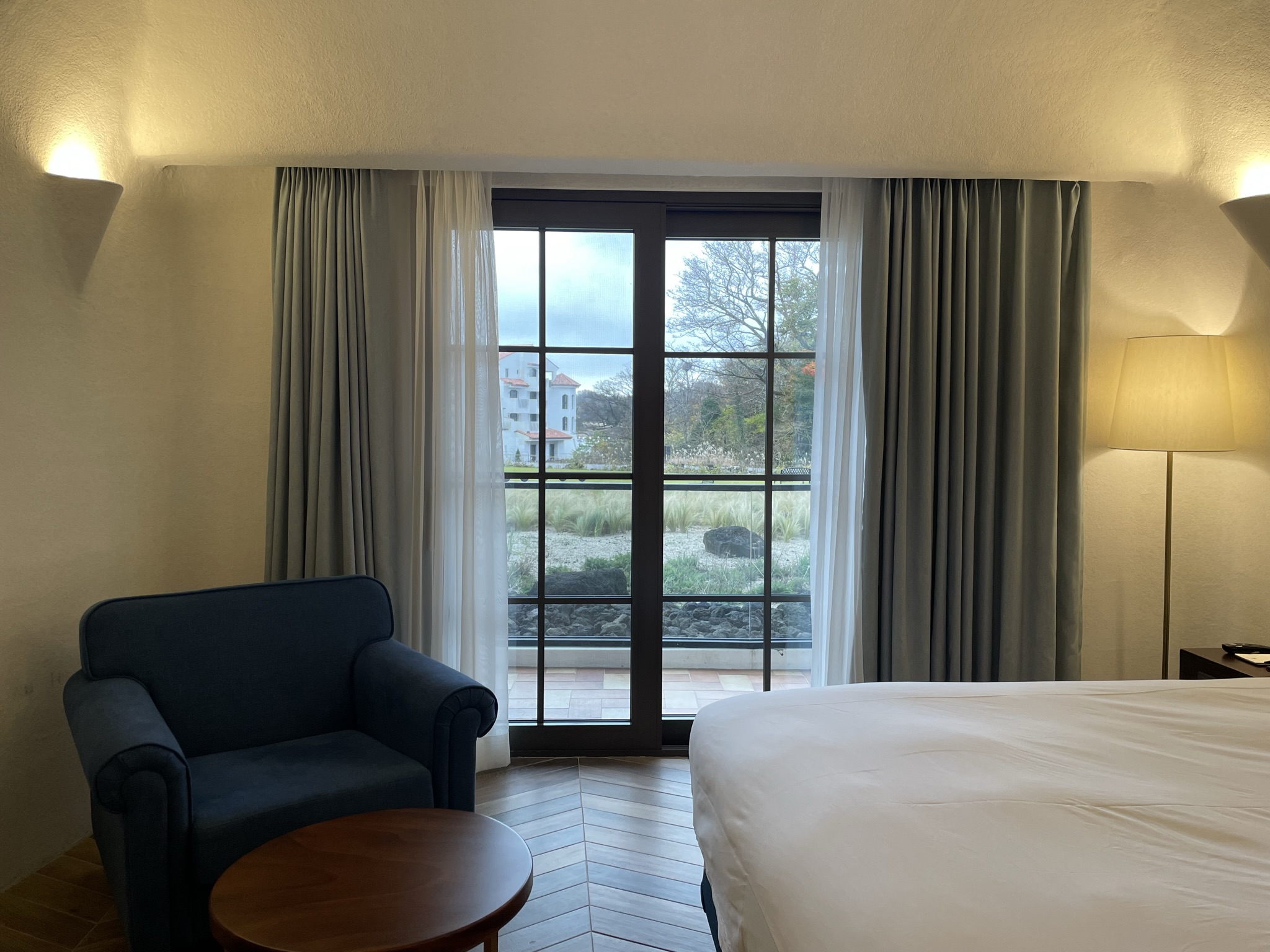 4성급에 싼 가격으로 딱히 기대하지 않았는데 생각보다 깔끔하고 넓어서 좋았다. 기대하지 않았어서 의외로 괜찮았던걸 지도. 굳이 이 호텔로 한 이유는 우도, 섭지코지 근처이기 때문이다. 네이버에 위생 관련 안 좋은 평이 많아서 걱정을 좀 했지만 막상 방에 들어갔는데 위생이 괜찮은 편이었다. 미리 난방을 틀어놓는다는데, 방에 들어가자마자 너무 더워서 난방을 껐고 문을 열어도 덥긴 했다. 겨울엔 괜찮을 듯하다. 코로나로 인해 조식당과 수영장 운영을 2022.12.31까지 중단한다고 한다. 수영장과 조식에 관심이 없었기에 딱히 상관없었다.
