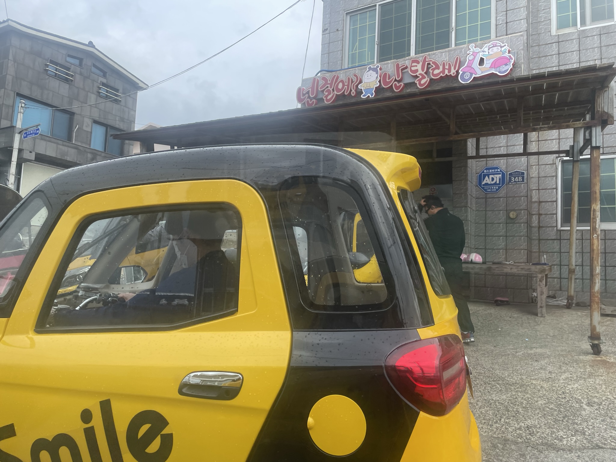 우도에 도착하면 다들 귀여운 전기차? 같은걸 타고 다닌다. 걸어 다닐 수도 있지만 걷기에는 그래도 섬이 크기 때문에 이동수단을 빌리는 것을 추천한다. 본인은 하우목동항에 내렸는데 여기 바로 앞에 있는 업체에서 빌렸다.