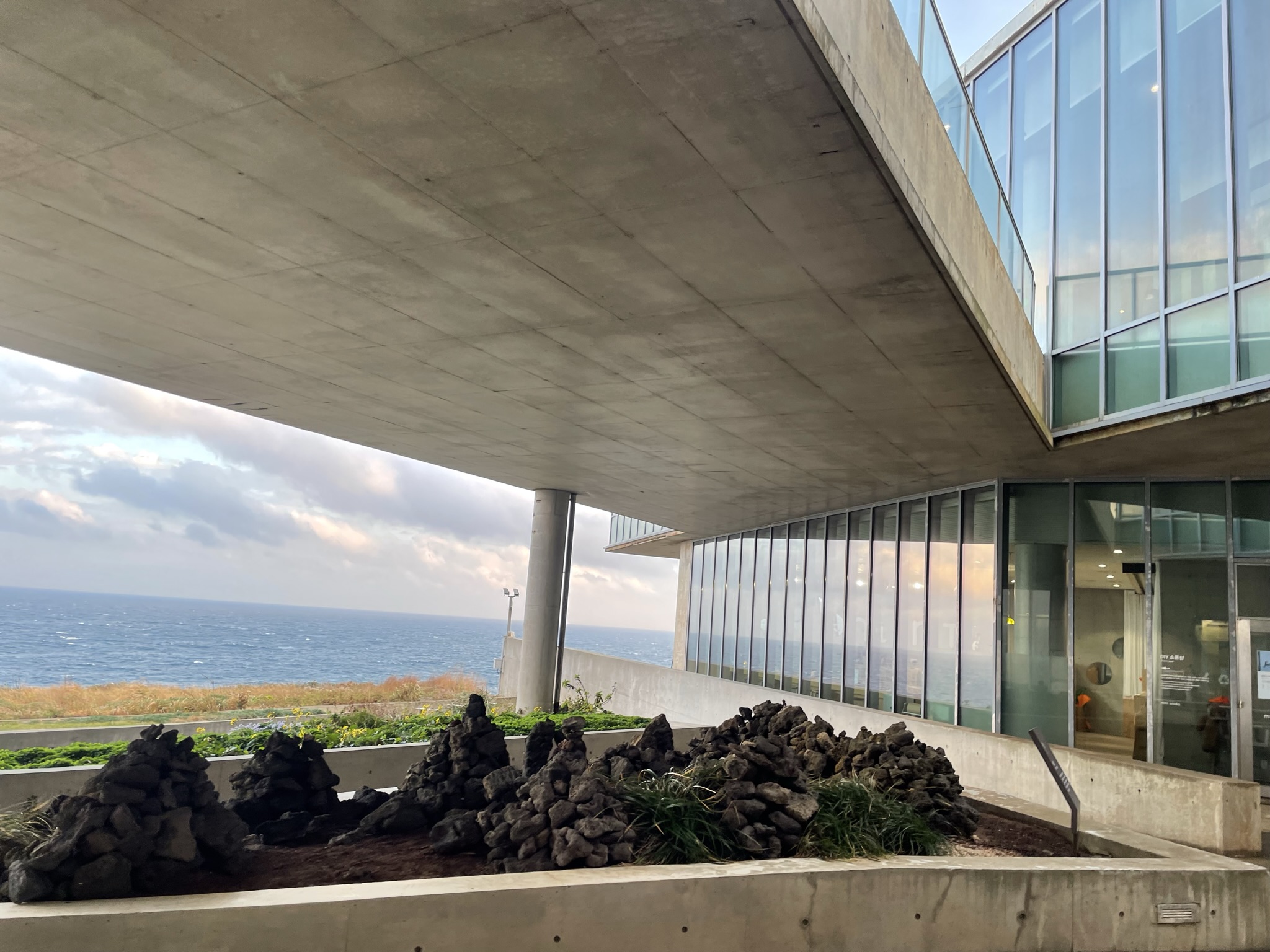 카페와 스튜디오, 레스토랑이 있는 건물이다. 이 건물도 안도다다오가 건축했고 굉장히 간결한 형태를 보여준다. 건축물은 양쪽으로 바다를 향해 뻗어 나가는 느낌을 준다. 섭지코지에서 여기까지 왔다면 꽤 걸었기에 카페에서 잠시 쉬다 가기 좋다. 점심에 카페에서 흑돼지 햄버거를 판다고 하는데, 저녁에는 팔지 않아서 먹어보진 못했지만 맛있을 것 같다.