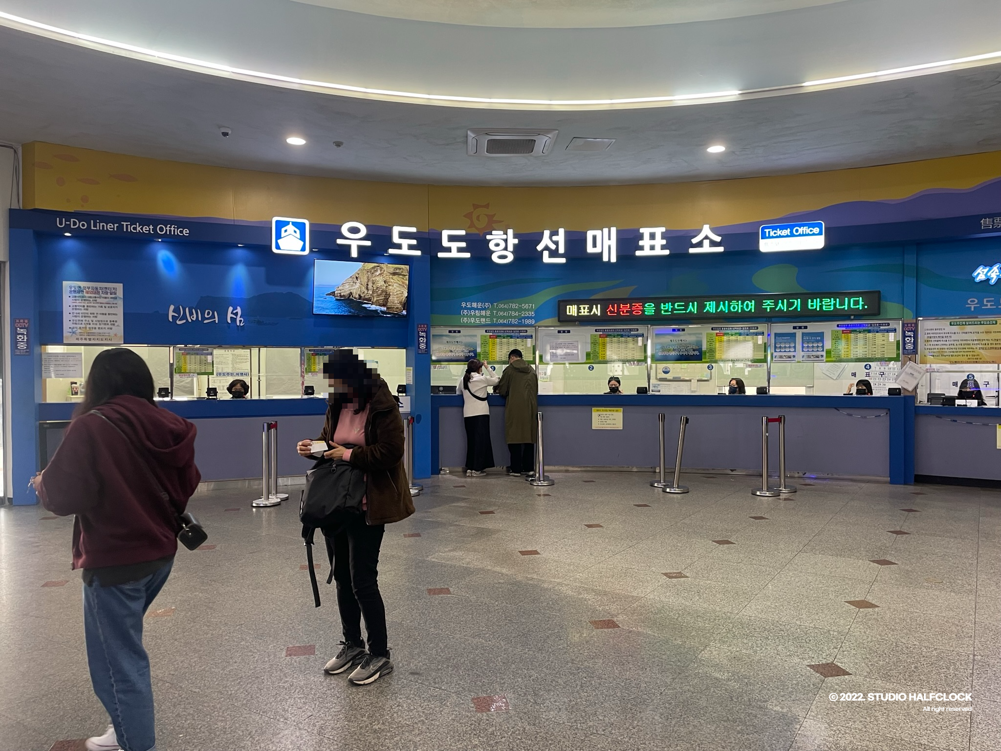 우도에 가기 위해서는 배를 타야 하는데, 우도항으로 가서 주차를 하고 승선신고서를 작성하여 티켓을 사면 된다. 생각보다 굉장히 간단하다. 참고로 우도항의 주차장이 공영주차장이지만 나갈 때 주차비를 냈다. 유료 주차장인 줄 몰랐다. 30분 간격으로 운행을 하기 때문에 정시나 30분 전에 오면 바로 탈 수 있다.