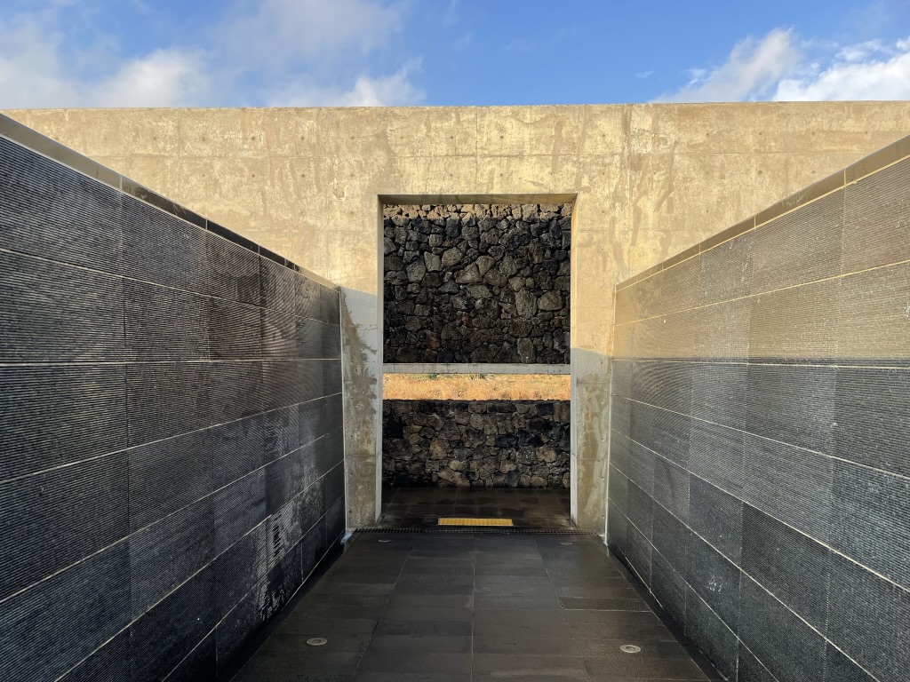 유민 미술관에도 안도다다오 특유의 물벽(Water Wall)이 있다. 제주도에 있는 또 다른 안도다다오의 건축물인 본태미술관에도 있는데, 건축물에 물을 이용하는 것은 안도다다오의 건축 특징 중 하나이기도 하다. 이 물벽을 지나갈 때 청각, 시각적으로 시원함과 상쾌함을 느낄 수 있었다. 물벽을 지나면 담장의 틈을 통해 제주도의 자연이 보이는데 이 '틈'을 이용해 자연만 볼 때, 또 다른 새로운 느낌을 받을 수 있었다. 마치 자연을 몰래 보는 느낌. (개인적인 의견)