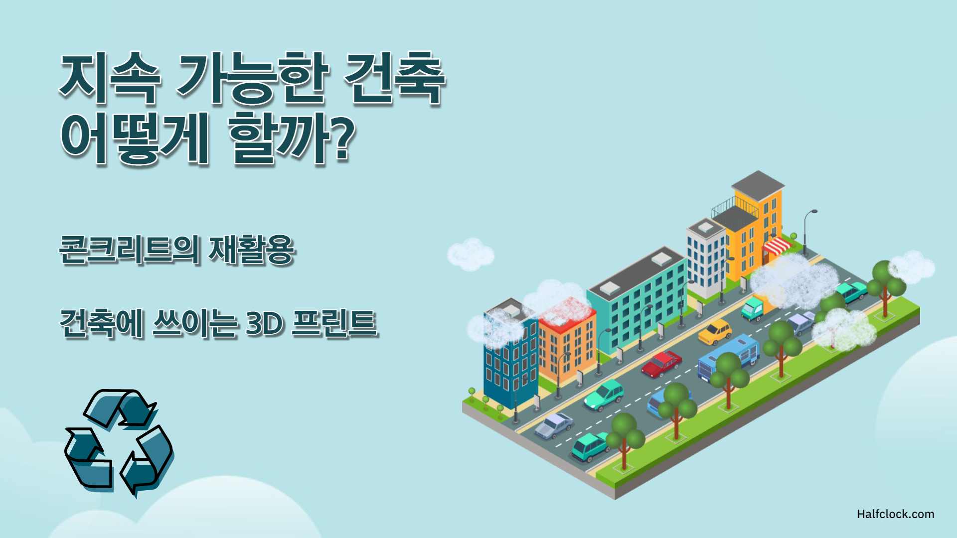 2020년 기준, 세계 건설 폐기물은 연간 13억 톤이라고 한다. 건축물을 건설하면 콘크리트, 철근은 꼭 쓰인다. 건축 과정에서 발생하는 건설폐기물이 있고, 건축물이 노후화되면 철거를 하고 새로운 건물을 다시 만든다. 그때 발생하는 건설폐기물이 있다. 이러한 건설폐기물들은 최근 지속 가능한 건축, 환경, 지구에 대한 관심이 높아지면서 콘크리트를 어떻게 재활용할 수 있을지, 많은 과학자들과 건축가들이 고민하고 있다. 또한 건설폐기물과 노동을 최소화하는 3D 프린팅 기술을 이용한 건축 등 건축업계는 계속해서 새로운 방법을 탐구하고 있다. 최근 ESG경영이 대두되면서, 많은 건축업계 기업들은 '친환경'을 키워드로 건축에 도입하려고 노력하는데, 드라마틱한 성과보다는 차근차근 견본주택부터 환경친화적으로 진행, 견본 주택을 VR로 진행하는 등, 나름의 노력을 보여주고 있다.