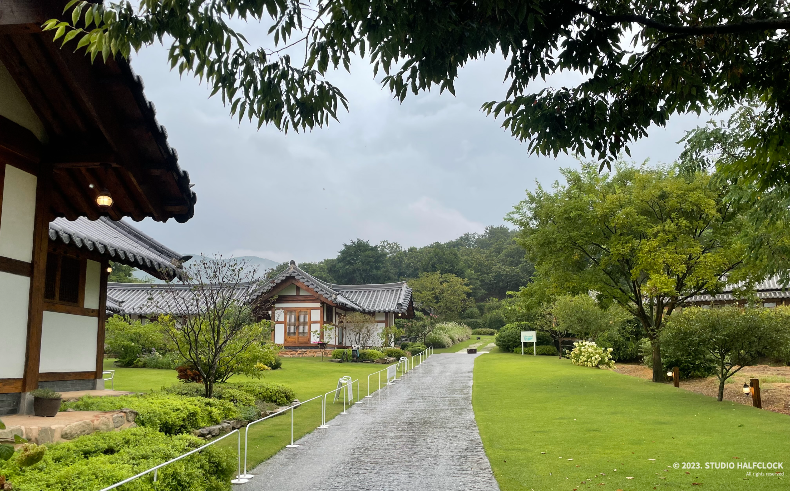 가온채에서 바라본 정원 모습이다. 한적하고 조용하게 머물다 가기 좋은 공간이었다. 아침에 조식을 먹고 마루에 앉아 정원을 구경하다가 숙소에서 키우는 강아지도 봤다. (레트리버 있어요) 멀리에는 크고 작은 산봉우리들이 펼쳐져 있는데, 비가 와서 그런지 산 중턱에 운무가 가득했다. 자연에서 조용하고 한적하게 여유를 부리고 싶다면 한옥스테이만큼 알맞은 곳이 없을 것 같다. 충주에 여행을 간다면 여기 숙소 강력 추천!
