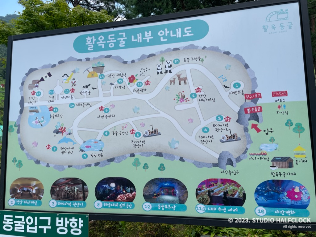 동굴길이 57km, 지하 수직고 711m로 백상 모암이 밝고 은은한 느낌을 줍니다. 2019년 활옥동굴이 광물 채광 역사의 막을 내리고 힐링과 체험의 동굴로 재탄생했습니다. (넷플릭스 DP 촬영장소라고 합니다.)