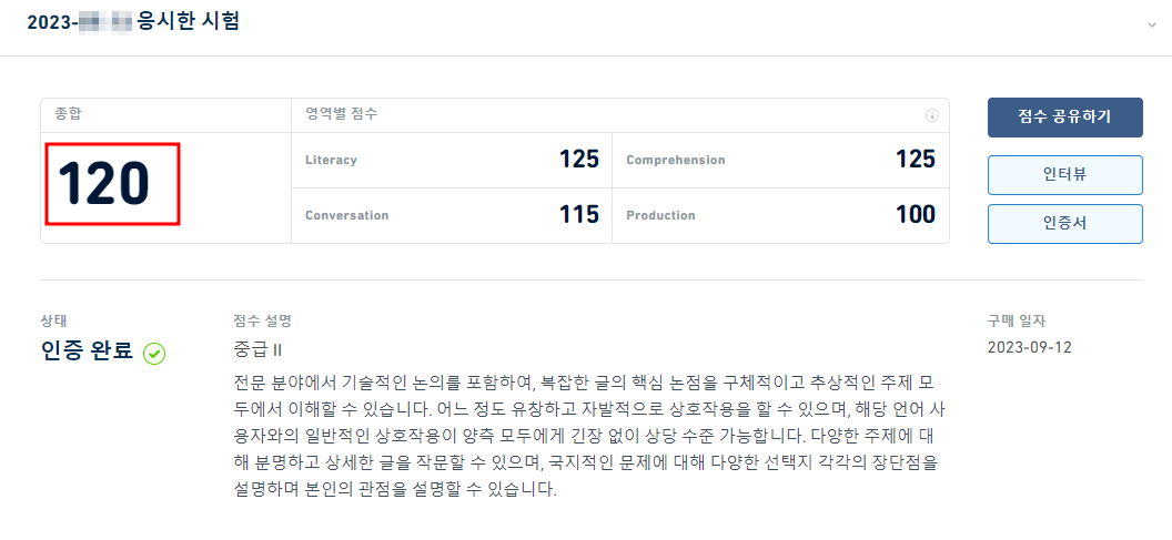 성적은 115점... 아 진짜 너무 아쉽지만 그래도 시험 두 개 구매했으니...쓰기 및 말하기가 문제가 많은데, 85점이라니... 충격적^^ 여러분 어버버 하면 이렇게 됩니다.. 나 한국말도 잘 못한다고..심지어 내가 지원하려는 곳은 모든 영역 95 이상 나와야 했음. 그러니까 쓰기 및 말하기를 10점만 더 올리면 된다. 파이팅..