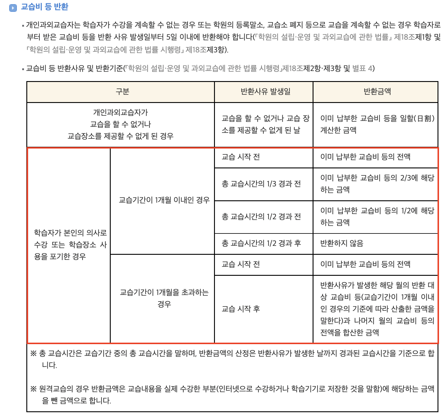 환불 진행할 때, '학원비 환불규정'을 꼭 확인해서 본인이 어디에 속하는지 잘 알아야합니다.